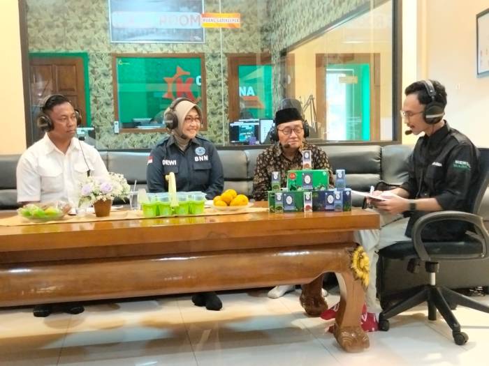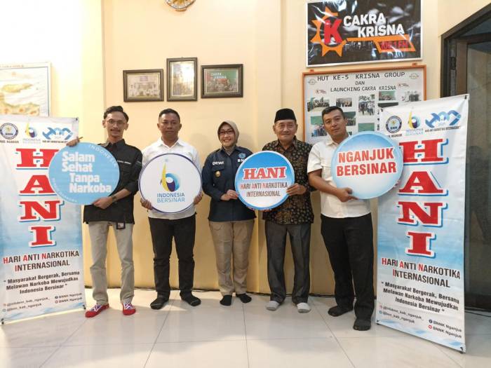 Talk Show menyambut HANI dengan mengambil tema “Sambut Hari Anti Narkotika Internasional” tersebut juga dihadiri dua narasumber lain yakni Kepala BNN Nganjuk AKBP L Dewi Indarwati, A.Mk, S.H., M.M., dan Ketua Dewan Pendidikan Kabupaten Nganjuk KH. Roni Sya’roni.