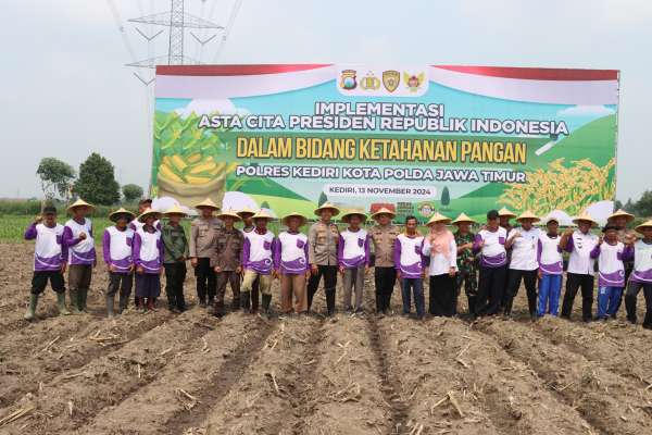 Kediri Kota || expressnewstoday.net – Sebagai salah satu implementasi program Asta Cita Presiden RI Prabowo Subianto bidang ketahanan pangan Polres Kediri Kota Poda Jatim dengan menanam bibit jagung