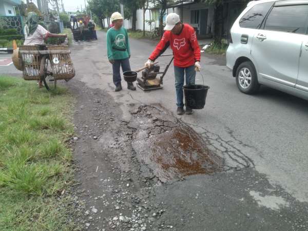 Salah satunya kegiatan pemeliharaan ruas jalan Ringinpitu dari perempatan radio jos ke timur dengan penambalan jalan berlubang menggunakan material coldmix
