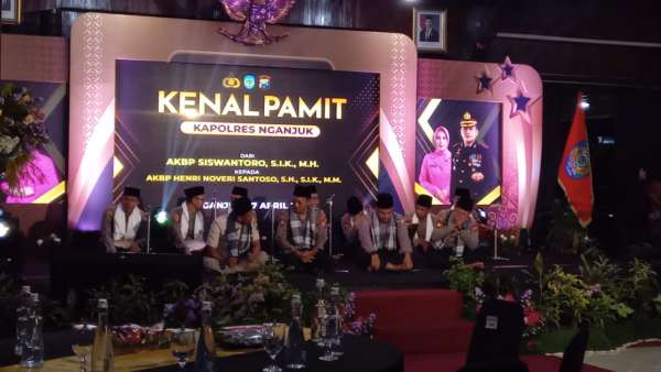 Nganjuk, ||expressnewstoday.net-17 April 2025 — Suasana penuh haru dan kebersamaan mewarnai acara “Kenal Pamit Kapolres Nganjuk” yang digelar di Pendopo Kabupaten Nganjuk, Rabu malam (17/4). Dalam seremoni tersebut, tongkat estafet kepemimpinan Polres Nganjuk secara resmi diserahkan dari AKBP Siswantoro, S.I.K., M.H., kepada pejabat baru AKBP Henri Noveri Santoso, S.H., S.I.K., M.M.