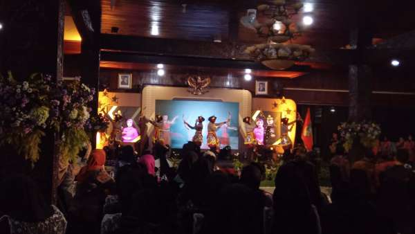 Panggung utama dihias dengan ornamen emas, bunga segar, serta layar LED besar yang menampilkan visual dinamis mendampingi pertunjukan. Para penari tampil anggun mengenakan busana adat khas dengan properti senjata tradisional, membawakan koreografi yang kuat dan penuh makna simbolis. Pertunjukan ini menjadi wujud apresiasi atas dedikasi pejabat yang dilepas serta sambutan hangat bagi pemimpin yang baru.