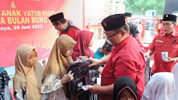 Surabaya || Expressnewstoday.net – Menyambut peringatan 124 tahun kelahiran Ir. Soekarno, Baitul Muslimin Indonesia (Bamusi) Kota Surabaya menggelar Khotmil Qur’an dan santunan kepada 124 anak yatim, Jumat (21/6/2025). Acara digelar di halaman Kantor DPC PDI Perjuangan Surabaya, Jl. Setail No. 8, berlangsung dengan penuh kekhusyukan sejak siang hingga menjelang magrib.