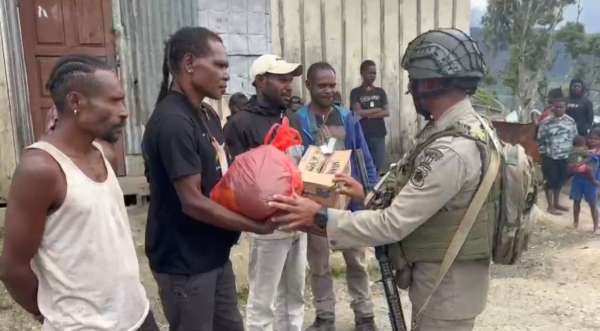 Sementara itu, di wilayah Sektor Intan Jaya, kegiatan sosial juga dilaksanakan oleh personel Satgas yang dipimpin Bripka Sudomo dengan memberikan bantuan bahan makanan (bama) kepada masyarakat yang sedang mengalami duka. Kegiatan ini merupakan wujud empati dan solidaritas aparat terhadap masyarakat yang sedang berduka, sekaligus bentuk kehadiran negara di tengah situasi sosial yang rentan.