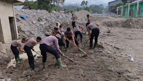 Polres Bener Meriah bersama personel Brimob Polda Aceh yang tergabung dalam BKO, berkolaborasi dengan masyarakat melaksanakan bakti sosial pascabanjir di Meunasah Al Taqwa, Kampung Lampahan Timur, Kabupaten Bener Meriah. Jumat, (30/1/2026).