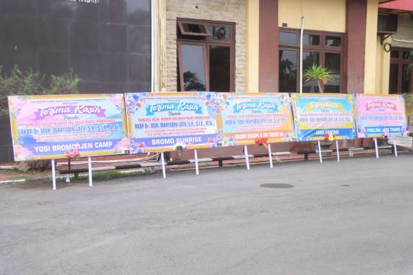 Karangan bunga yang berisi ucapan terimakasih, dukungan serta apresiasi gerak cepat dan kerja nyata Polres Probolinggo Polda Jatim dalam mengungkap tindak kejahatan itu datang dari berbagai elemen dan pelaku pariwisata.