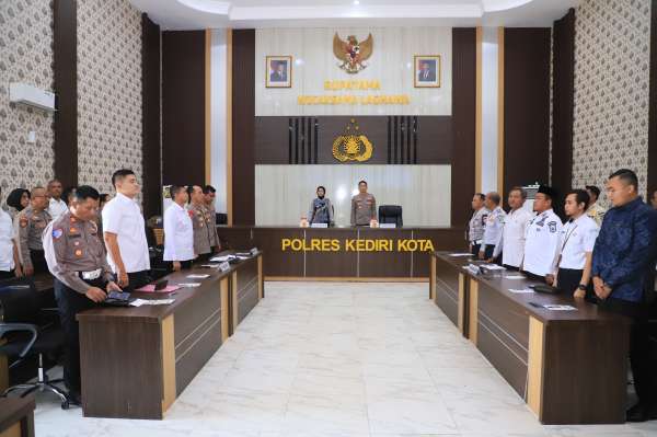 H., S.I.K., M.H., Wakapolres Kediri Kota Putu Gde Caka Pratyaksa Ratsuko, S.I.K., M.I.K., serta perwakilan dari Dishub, Dinkes, BPBD, PT KAI, BMKG, PLN, Satpol PP, hingga unsur masyarakat.