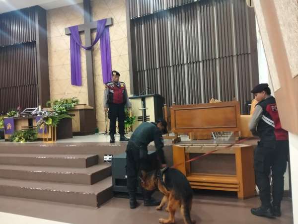 Dalam pelaksanaannya, petugas melakukan pemeriksaan menyeluruh di area gereja menggunakan metal detector serta melibatkan Unit K9 guna memastikan tidak adanya benda mencurigakan. Selain itu, koordinasi juga dilakukan dengan Bhabinkamtibmas (BKTM) dan pengurus gereja setempat untuk mendukung kelancaran kegiatan.