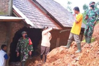 Kompak, Polisi bersama TNI dan BPBD Tangani Longsor yang Menimpa Rumah Warga